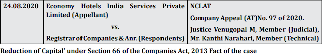 - The NCLAT observed that a company having a paid up capital of Rs.50,00,000/-, inventories of Rs.50,51,500/- , holding shares worth Rs.13,84,61,540/- and entering into tripartite agreement to carry on hotel business cannot be said to be without business or being inoperative since incorporation. The decision of the RoC impugned herein dated September 10, 2015 is, perverse.